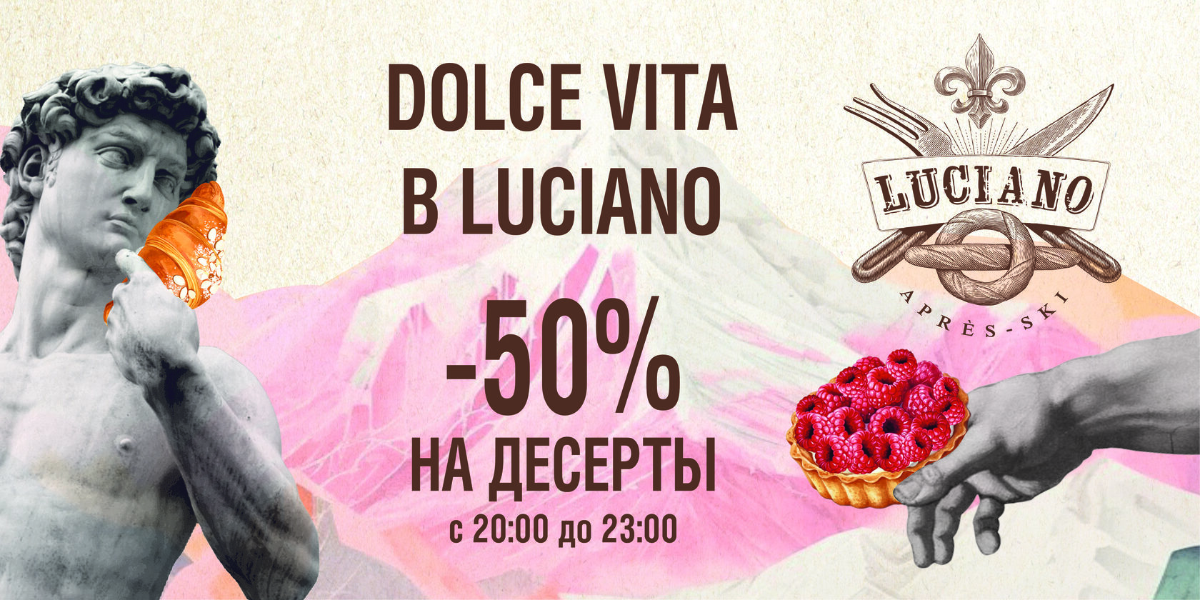 Атмосфера итальянской dolce vita на Роза Хутор: в ноябре каждый вечер дарим скидку 50 % на десерты.
